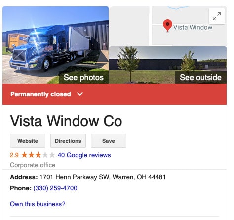 Unfortunately another smaller window manufacturer has closed their doors for good. It looks like Vista Window Company is gone. Their voicemail says they closed due to unforeseen circumstances and their google listing says they’re closed for good. We always hate to see a company struggle. Unfortunately, I think it’s going to continue to get more difficult for smaller window companies to compete.